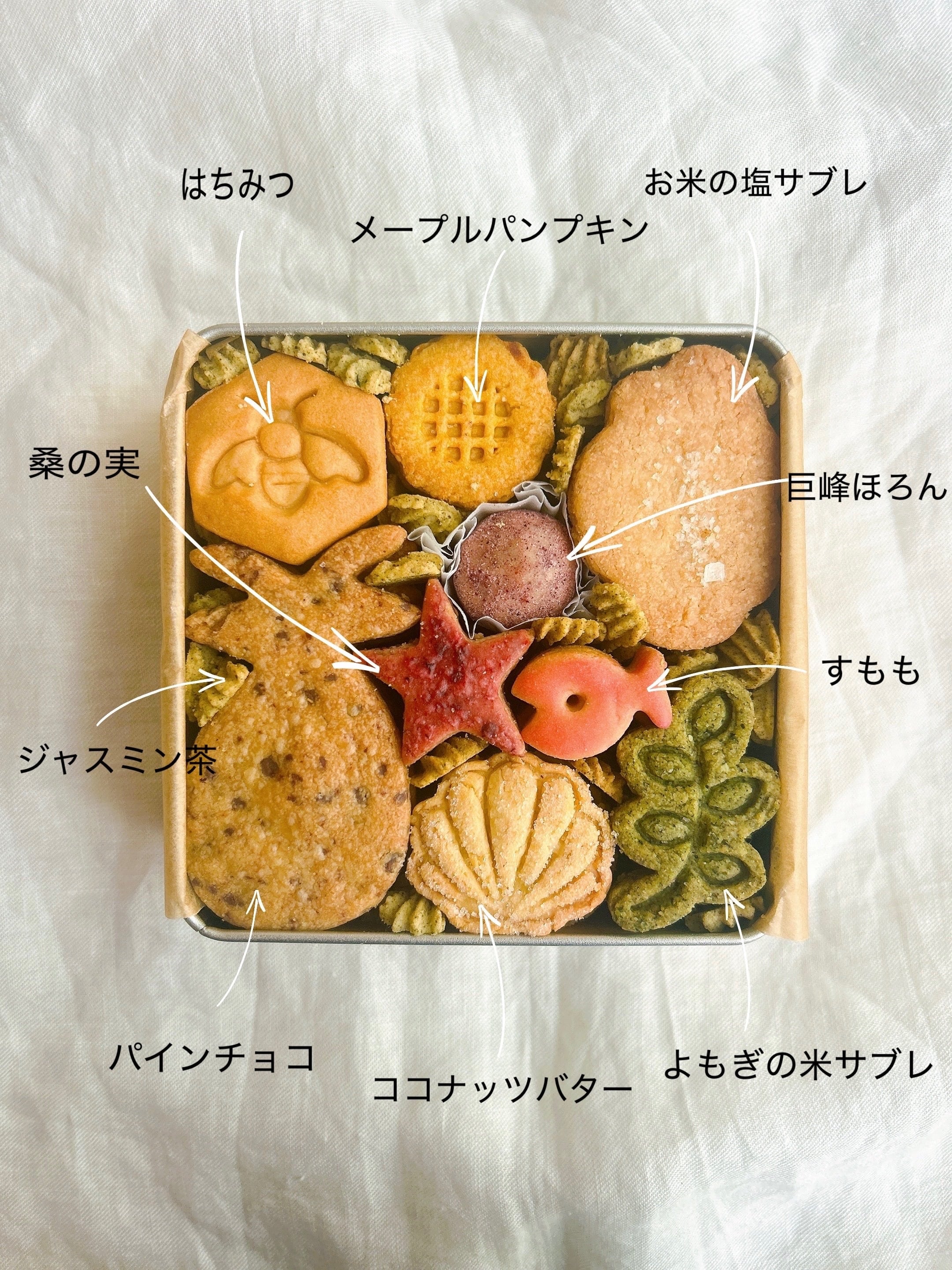 夏の景色をイメージした10種類のクッキーが缶の中いっぱいにぎゅぎゅっと入っています。