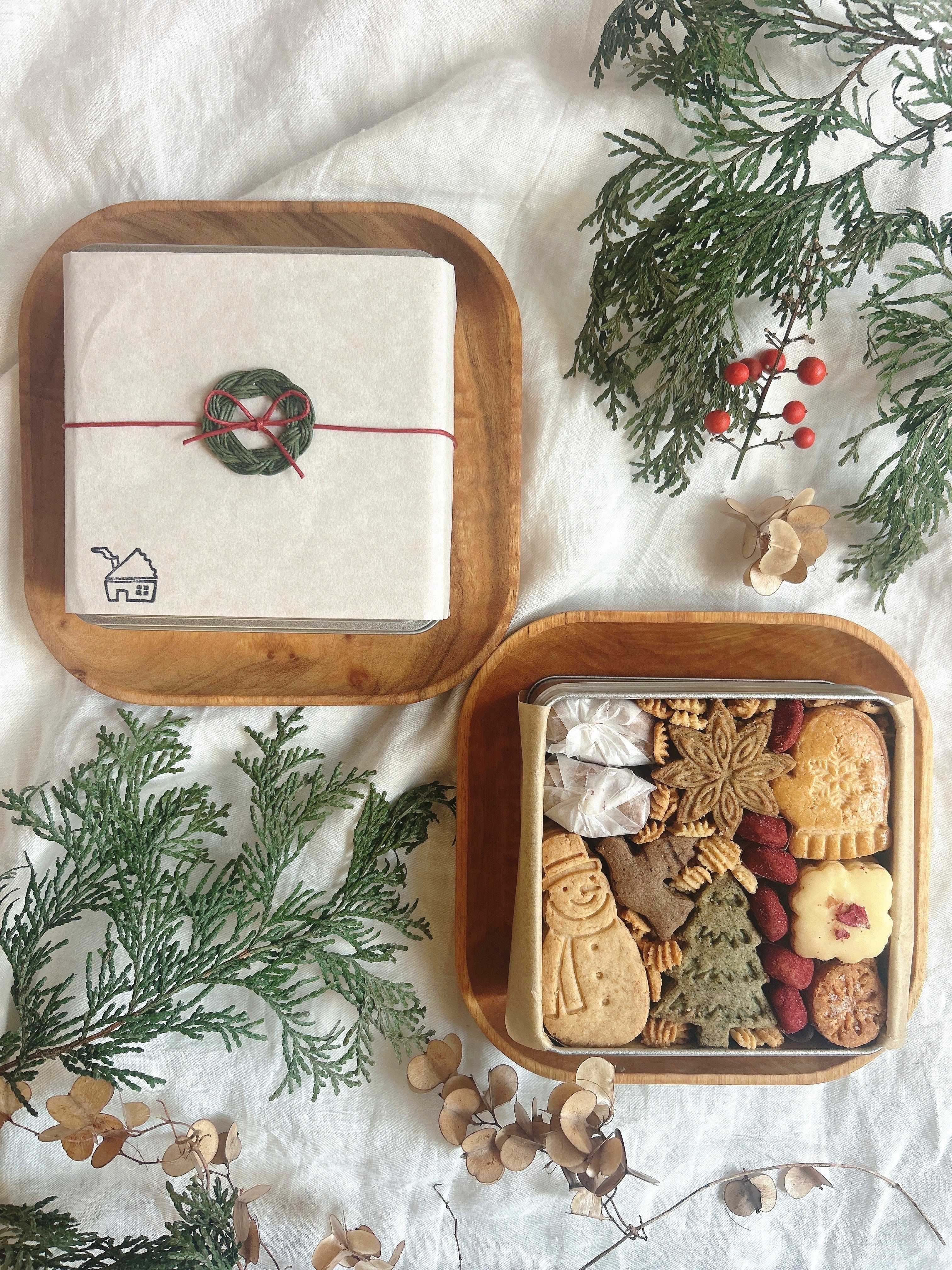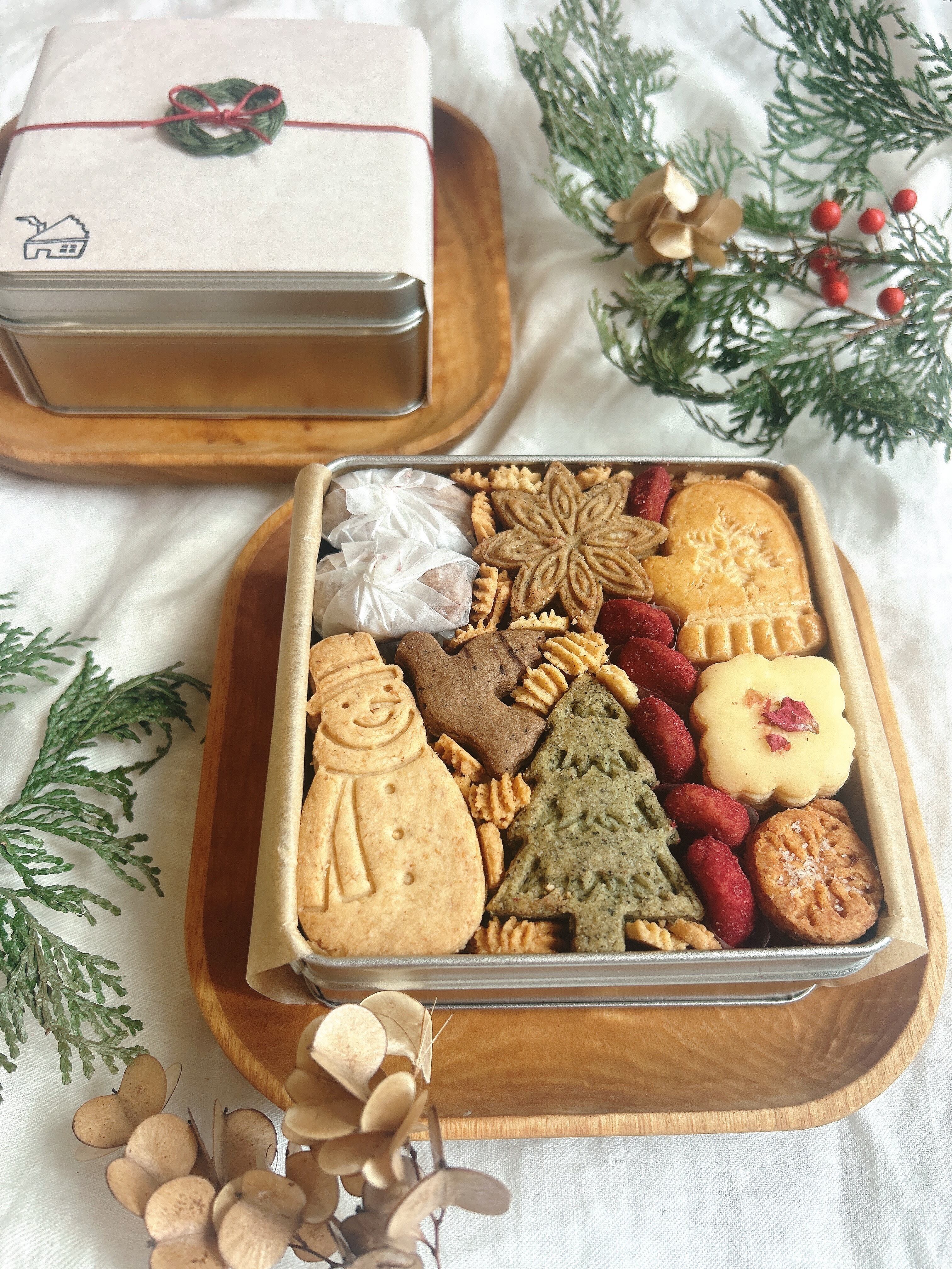 クリスマスの景色をイメージした10種類のクッキーが缶の中いっぱいに入っています。
